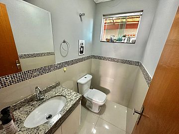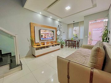 1° Pavimento: 01 sala ampla para dois ambientes; escritório embaixo da escada; 01 Lavabo de apoio; Cozinha toda planejada; área externa com Churrasqueira; Lavanderia separada.