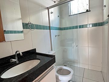 Cozinha com armários planejados e banheiros com box blindex garantem praticidade e elegância.